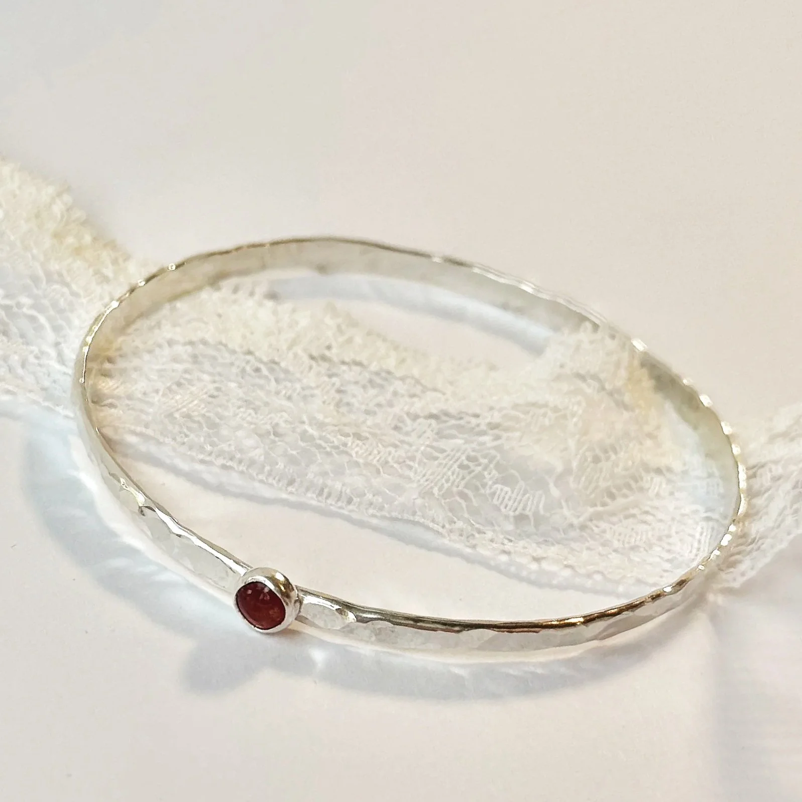 Sterling Silver Bangle Bracelet with Small Stone