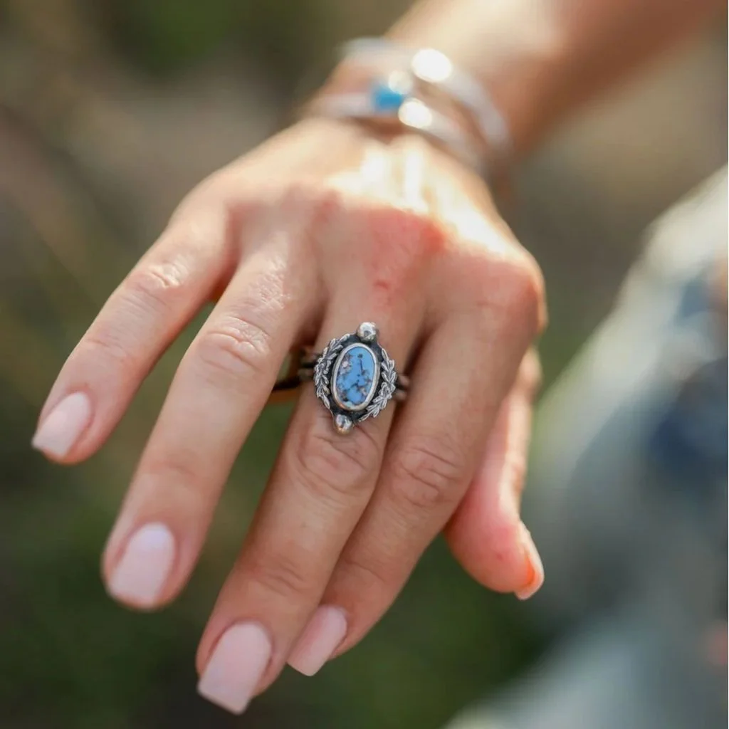 Make your own sterling silver gemstone ring from scratch in this private jewelry making class. Choose a natural stone (mostly turquoise, with other stones available) approximately ¾” x ¾”, then learn traditional metalsmithing techniques.