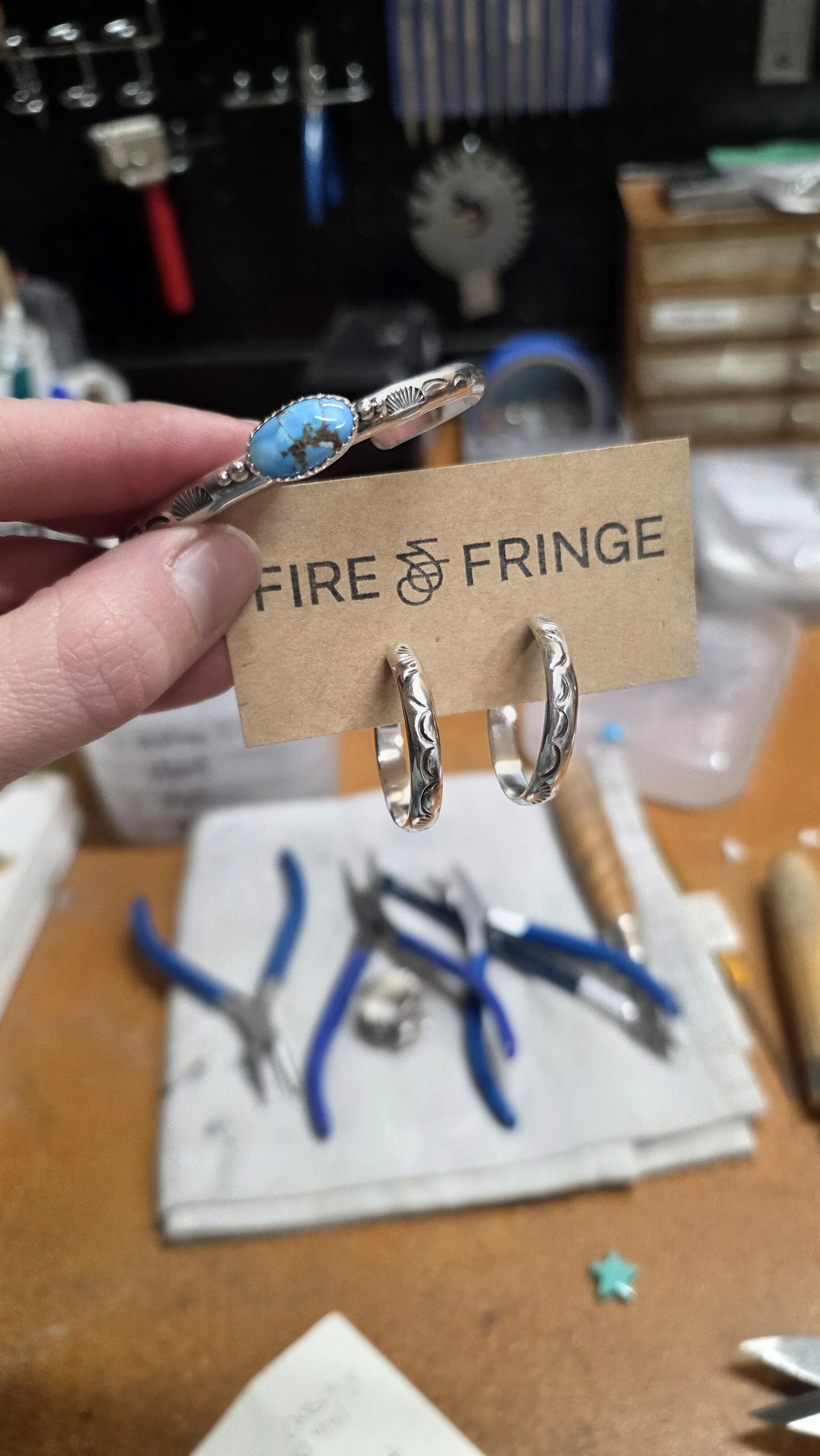 Shop Fire and Fringe › Repair + Earrings Image 1 of 2 Image 2 of 2 Repair + Earrings $110.00 Sold Out Cuff repair $90Earrings $20 Sold Out Added! Cuff repair $90Earrings $20 Reviews Reviewer Name Review Date Star Rating Description Posted on Etsy Product Show More