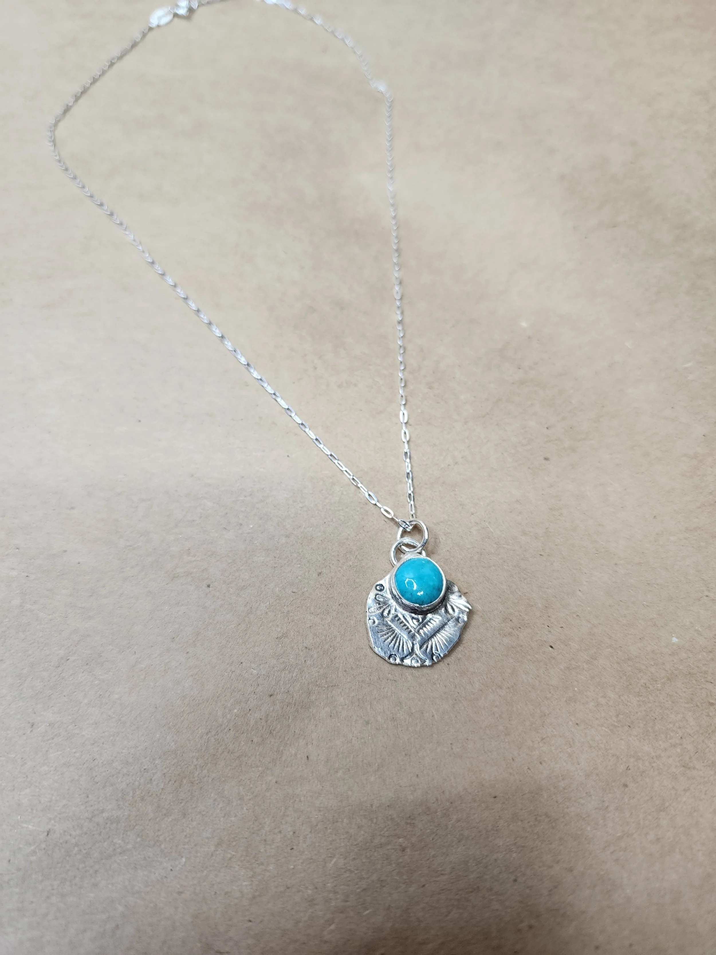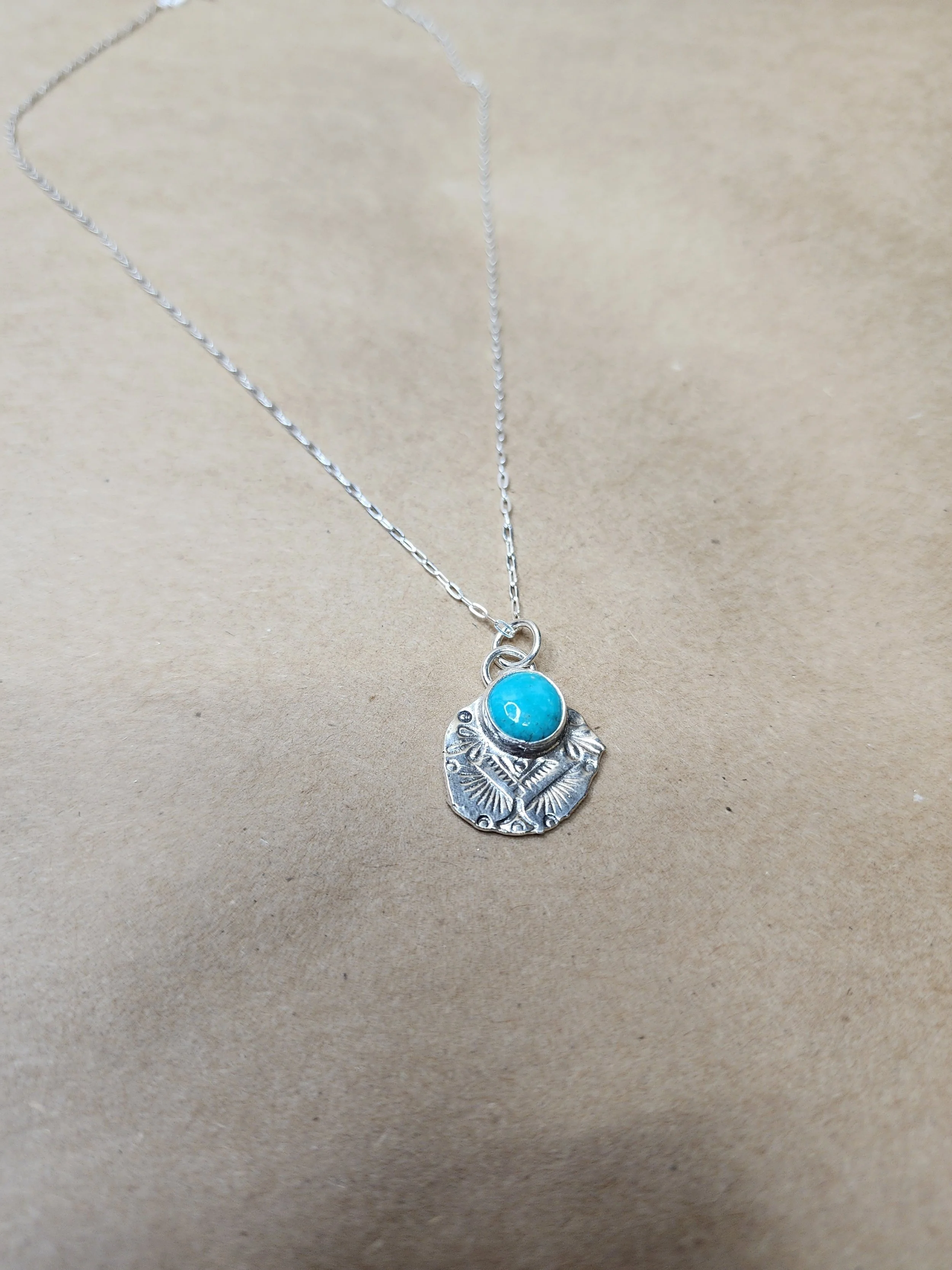 Add a touch of southwestern charm your ensemble with our handcrafted Turquoise and sterling silver stud earrings. These timeless earrings feature genuine Turquoise stones delicately set in sleek sterling silver framed by a hand stamped boarder